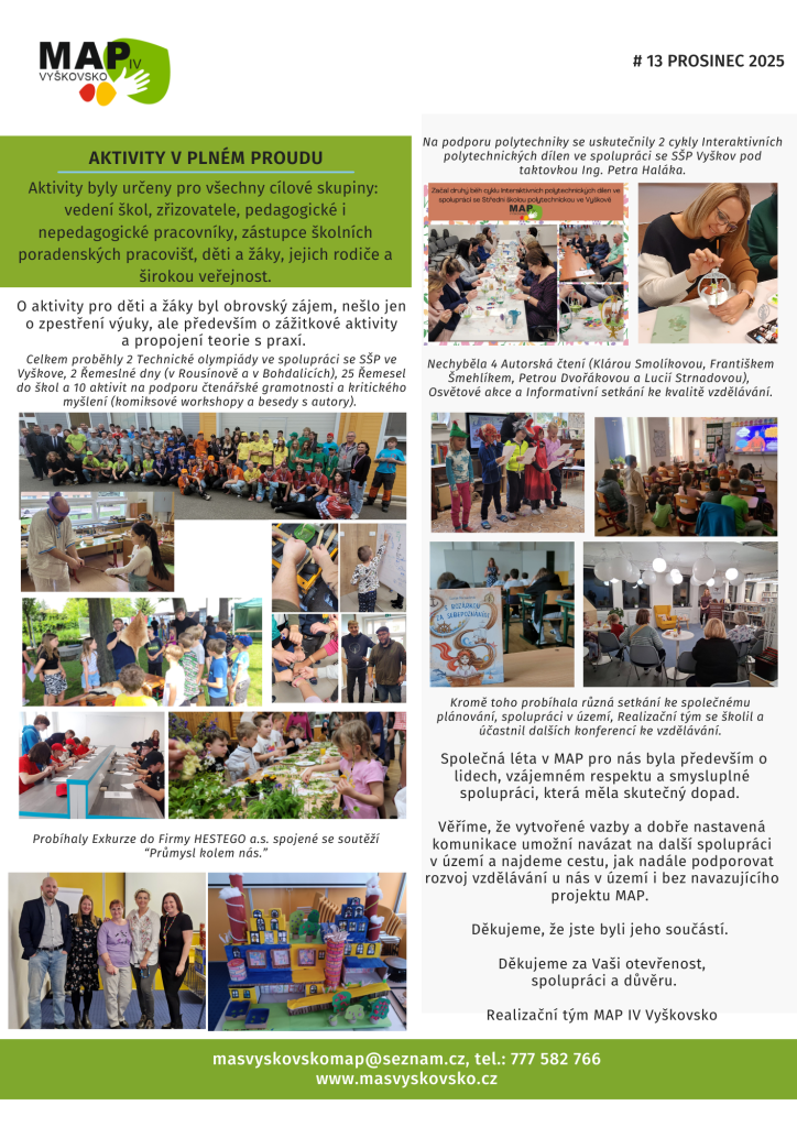 Poslední letošní MAPovinky, kde se dozvíte o uplynulém projektu MAP IV a novinkách českého školství. Přejeme všem krásné vánoční svátky a mnoho sil do nového roku! Tým MAP Vyškovsko