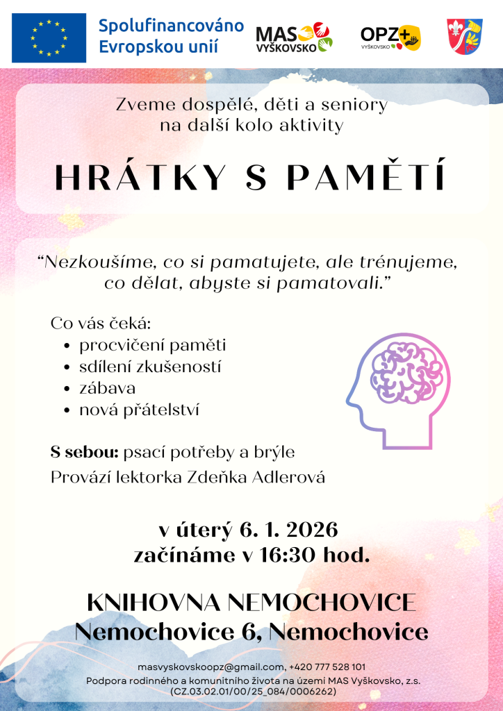 Začínáme již v lednu. První Hrátky s pamětí se konají v Nemochovicích.